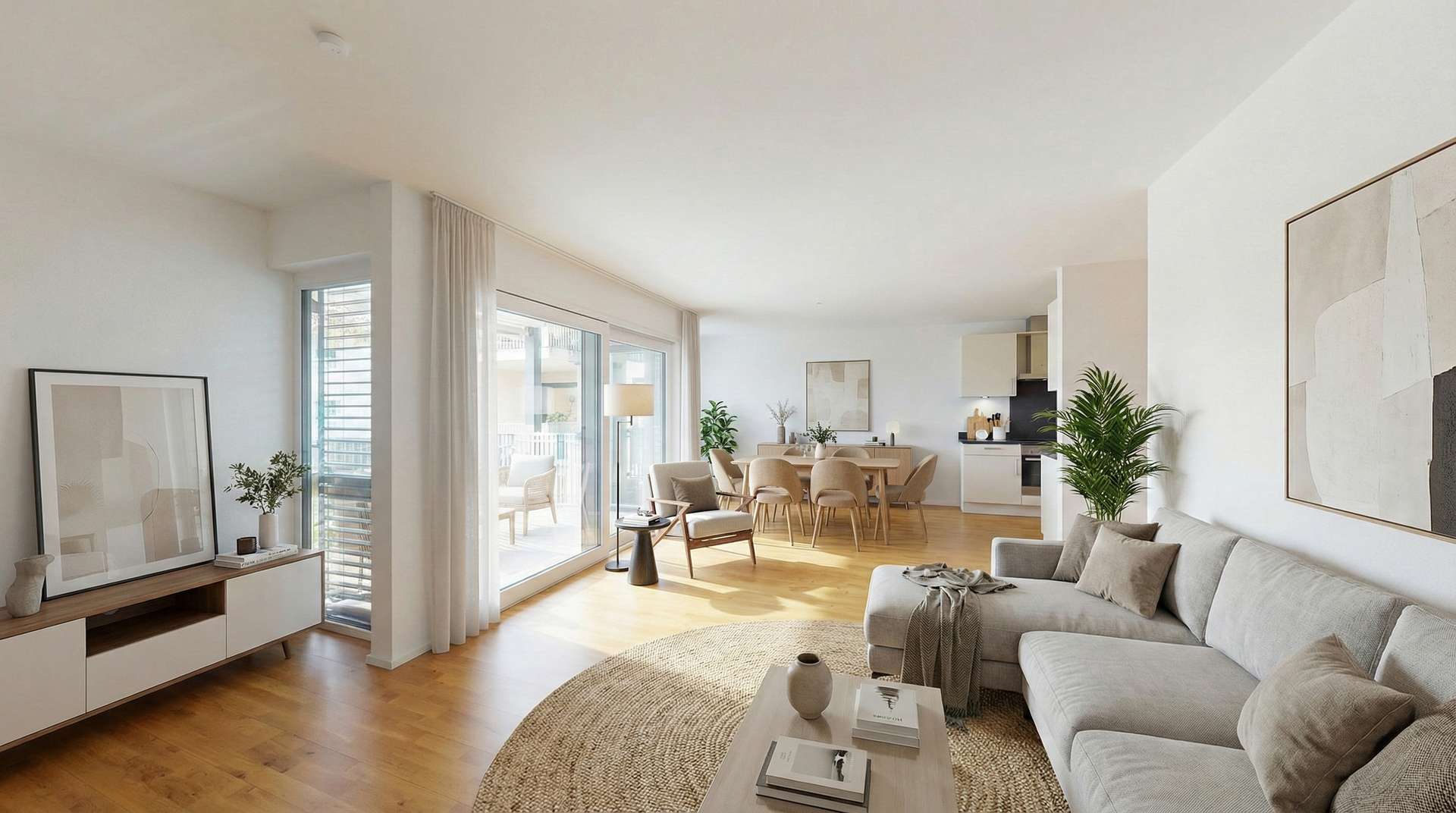 Die Wohnung verfügt über drei gut geschnittene Schlafzimmer, ein großzügiges Wohn-Ess-Kochzimmer mit moderner Einbauküche sowie ein innenliegendes Badezimmer und ein separates Gäste-WC. Der offen gestaltete Wohnbereich bildet das Herzstück der Wohnung und bietet über eine schwellenfreie Hebeschiebetür Zugang zum Balkon, der den Wohnraum nach außen erweitert und zusätzlichen Freiraum im Alltag schafft.